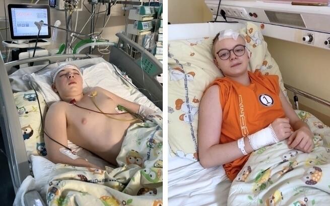 My husband found Krzyś unconscious on the floor of his room. Panic set in as we rushed him to the hospital, unsure of what was happening to our precious child. What followed was a nightmare we could never have imagined. Doctors diagnosed Krzyś with a hemorrhagic stroke in the left hemisphere of his brain. The battle for his life began immediately, and we were left in a state of disbelief. Our son was placed on the operating table for four long hours. As the clock ticked, we could do nothing but wait, terrified of the outcome.