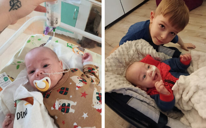 Mikołaj’s early days were filled with hospital visits, tests, and procedures. The first two months of his life were spent in the hospital, fighting for his survival. The constant worry and fear weighed heavily on us, but we found some relief when Mikołaj’s condition finally stabilized, allowing us to bring him home. That moment, when Mikołaj met his older brother Dawid, was one of joy, one of the happiest memories we could have hoped for. We had dreamed of this moment, and tears of happiness flowed as we saw our two children together for the first time. But as often happens in our story, this fleeting happiness did not last long.