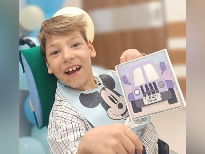 But that was only the beginning. Dawid was later diagnosed with cerebral palsy, a lifelong neurological condition that affects movement, muscle control, and coordination. While he understands everything around him, he struggles to express himself. Speech remains locked inside, and every movement is a challenge.