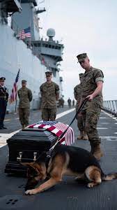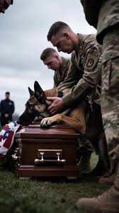 Reinforcements finally arrived hours later, but it was too late. Sergeant Martin had fallen, his life extinguished in the line of duty. But even in death, his bond with Lucky was not broken. At Martin’s funeral, the world witnessed an incredibly moving moment — a testament to the loyalty and love that transcends the battlefield. As the flag-draped casket was lowered into the ground, Lucky stood beside it, pressing his head against the casket in an act of mourning. It was as if the dog knew, in some deep, instinctual way, that this was the end of their journey together. The end of their final mission.